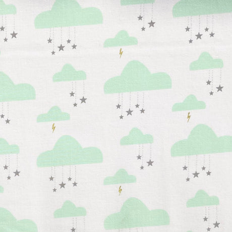 From $1400 AUDUnit price /UnavailableSwinging on a Star – Seafoam Clouds Fabric, Gold Metallic Stars – Michael Miller