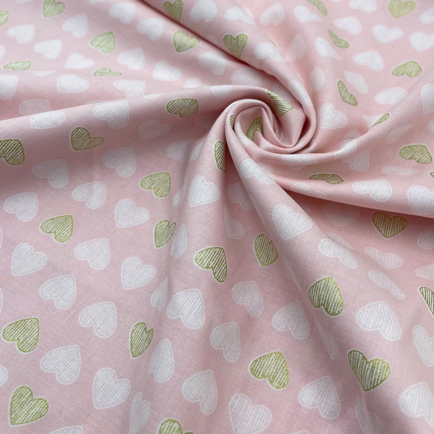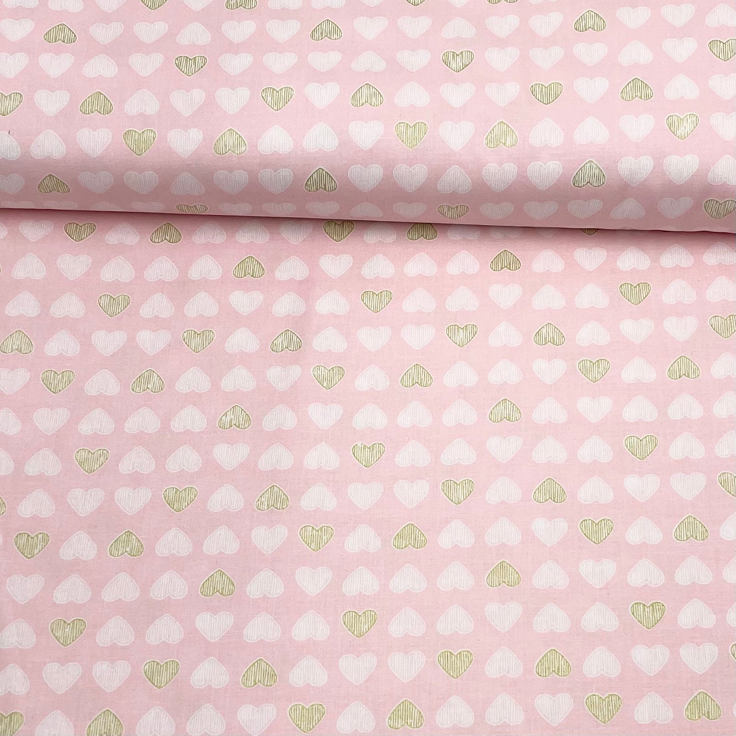 Heart of Gold, Blossom Pink fabric, Gold metallic Hearts by Michael Miller Fabrics - 1/2 Yard (18x44") is backordered and will ship as soon as it is back in stock.