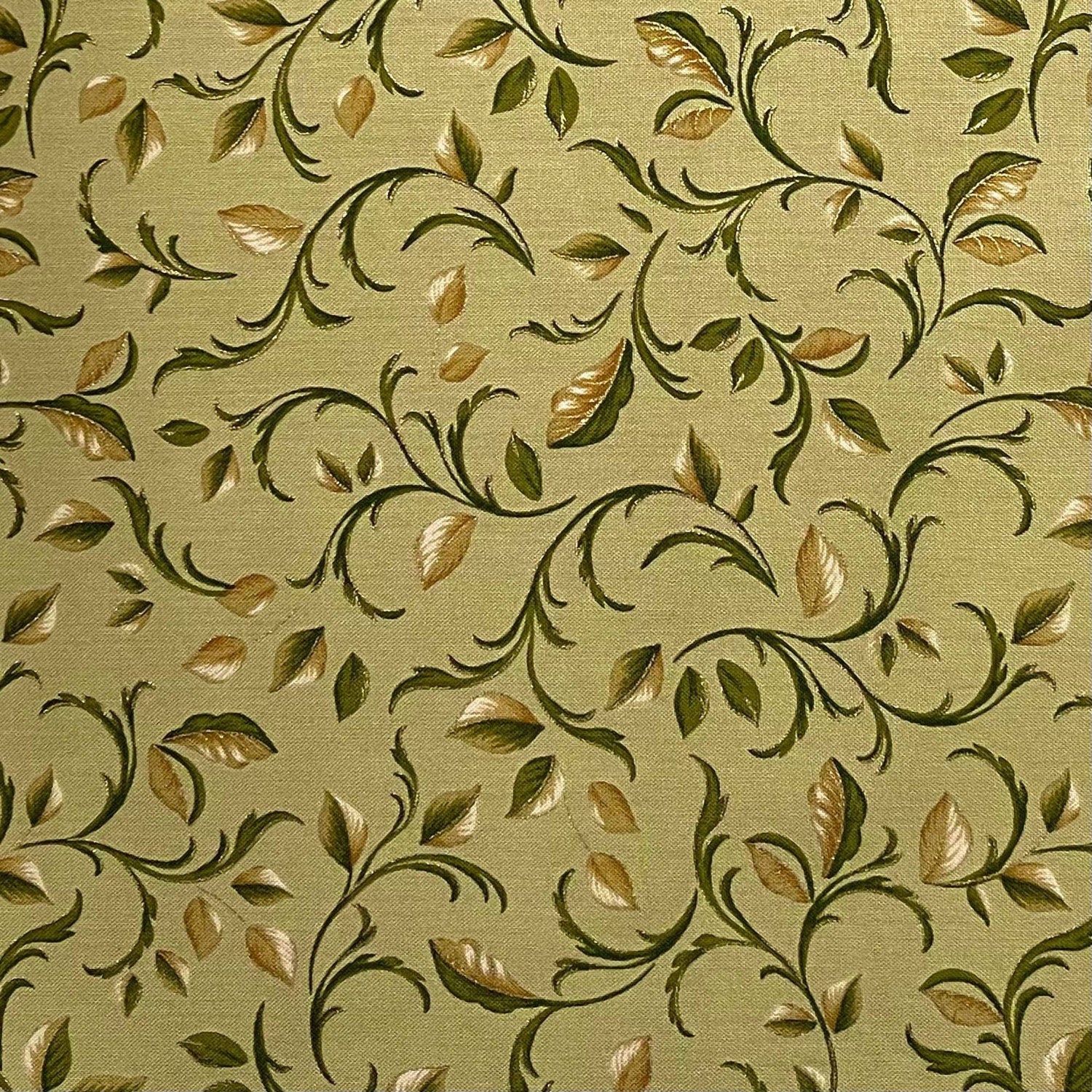 Bring the elegance of Classical Spain into your sewing projects with the Carmen Leaf Green Vines fabric by Maria Kalinowski for Kanvas Studio/Benartex. This 100% cotton quilting fabric showcases lush green vines accented with metallic gold, set against a rich, timeless palette. Perfect for quilts, décor, and statement pieces.