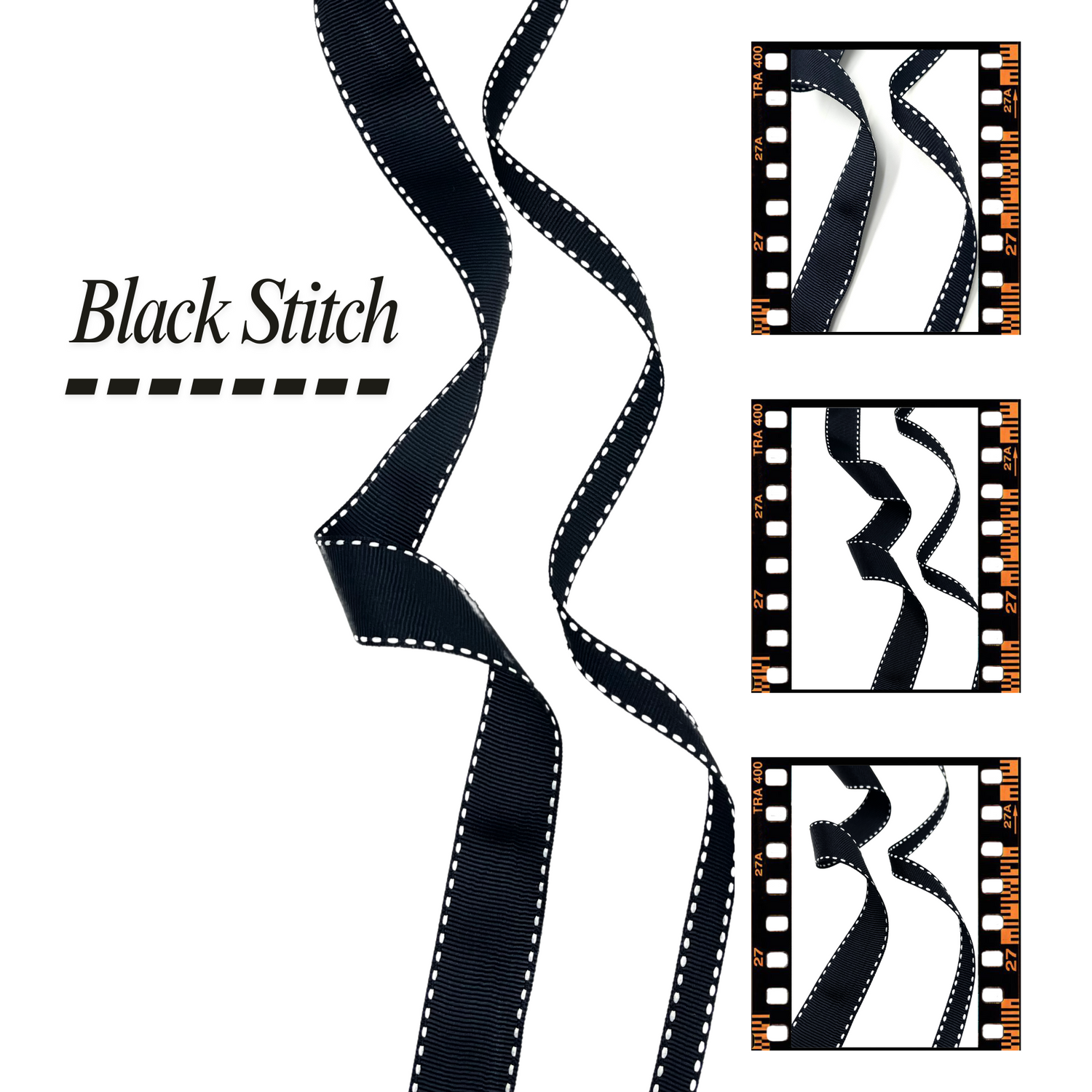 • Black grosgrain ribbon with white edge stitching