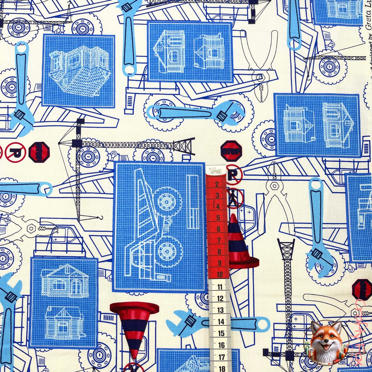 Bring industrial energy to your projects with the Under Construction – Mining Blue fabric by Greta Lynn for Kanvas Benartex. This rare 100% cotton quilting fabric features a bold mining-inspired design, perfect for quilts, patchwork, bags, children’s projects, and craft creations. A great choice for construction lovers and unique project themes.