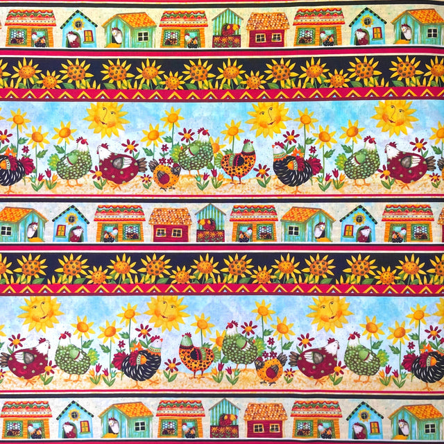 Sunflower Serenade: Chicken Border Fabric by Henry Glass - HG6873-44