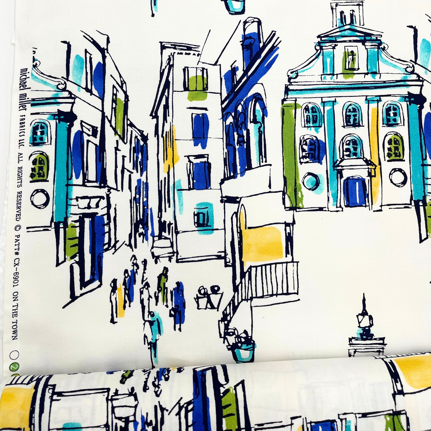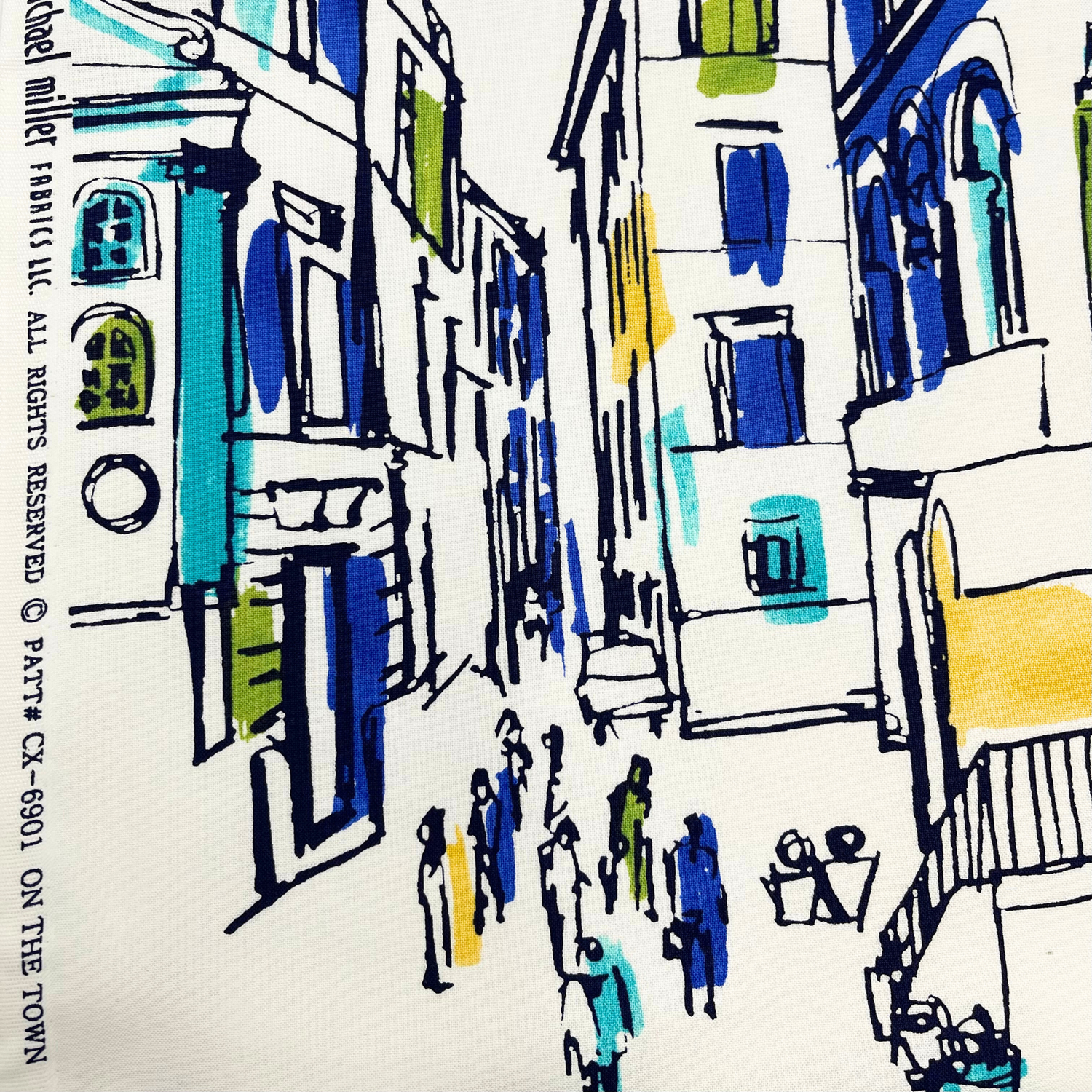 On the Town Fabric – Blue, 100% Cotton Quilting Fabric by Michael Miller - 1/2 Yard (18"x44") is backordered and will ship as soon as it is back in stock.
