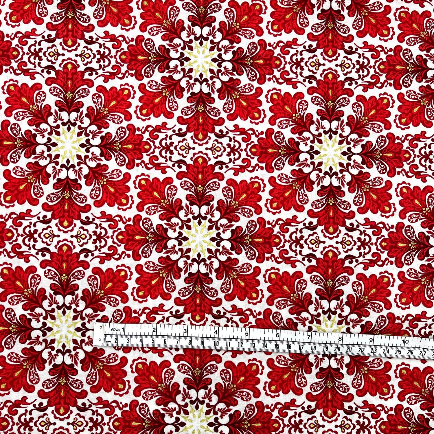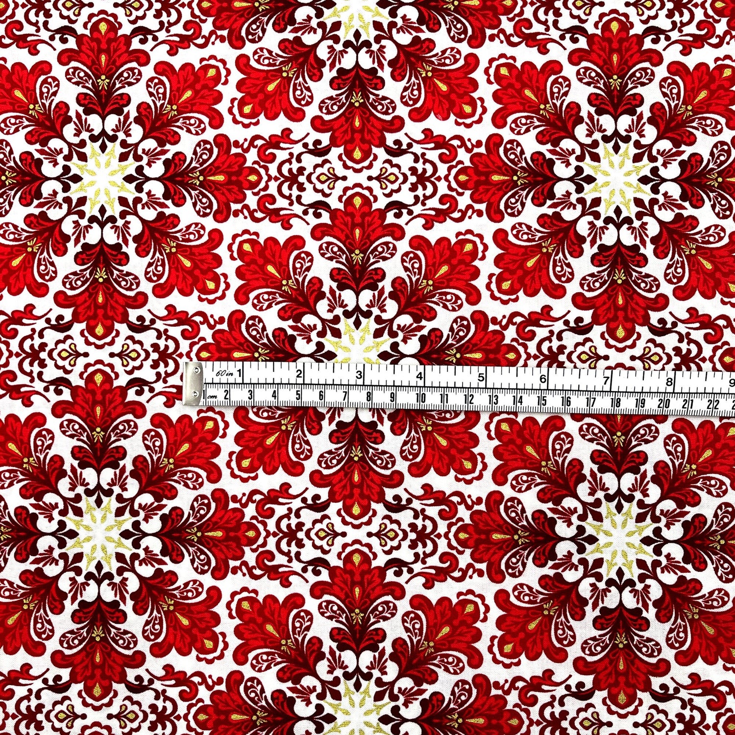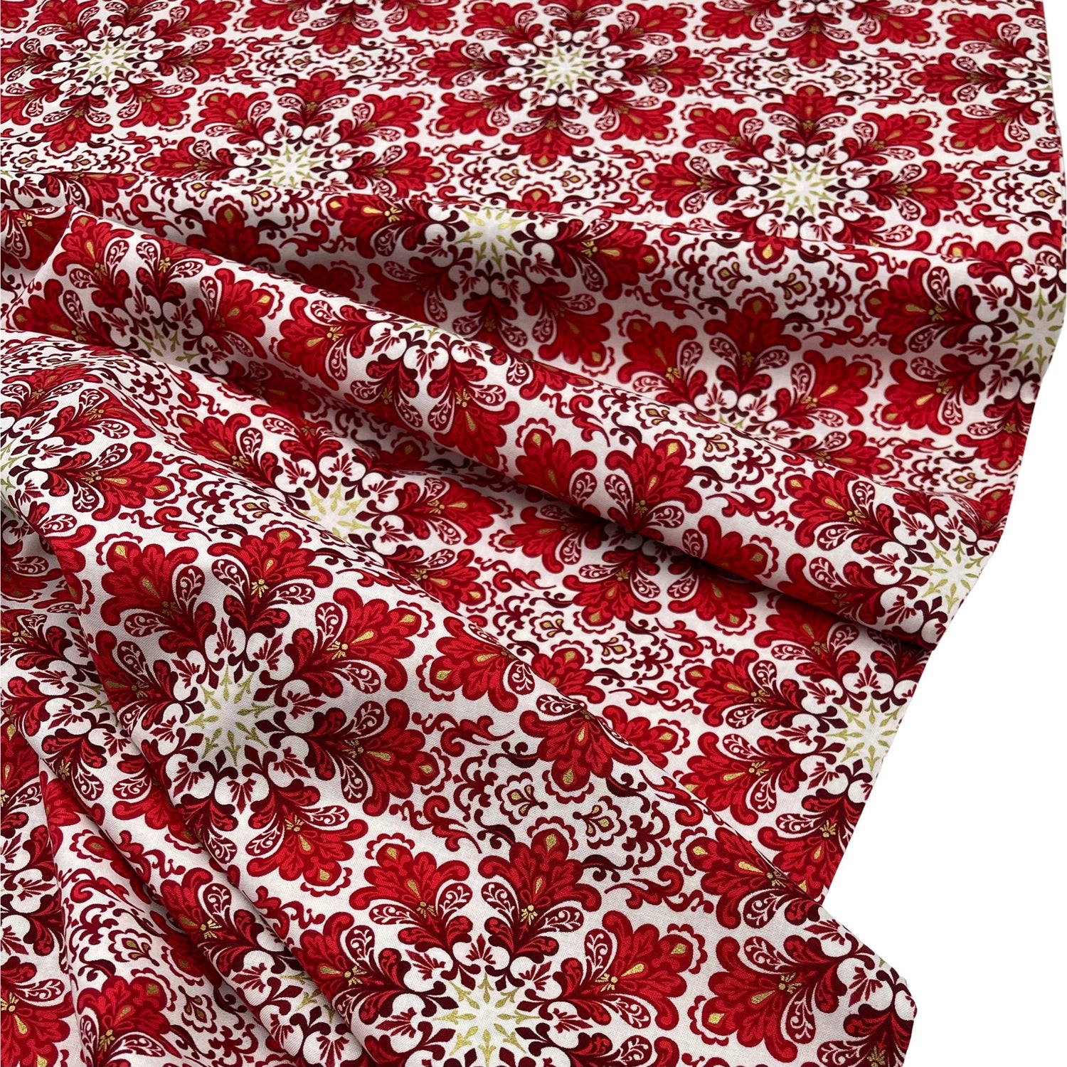 Add festive charm to your projects with Christmas Splendor by Henry Glass. Featuring red and white snowflakes with dazzling gold accents, this 100% cotton quilting fabric (HG8320M-44) is perfect for seasonal quilts, holiday décor, and Christmas crafts.