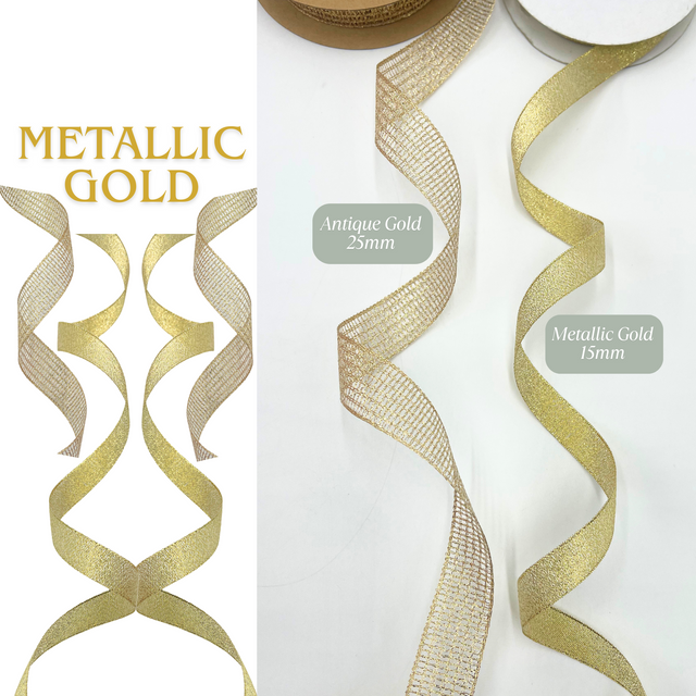 Gold Metallic Ribbon – 15mm or 25mm | Gift Wrap Ribbon - Metallic Gold 15mm-1mtr is backordered and will ship as soon as it is back in stock.