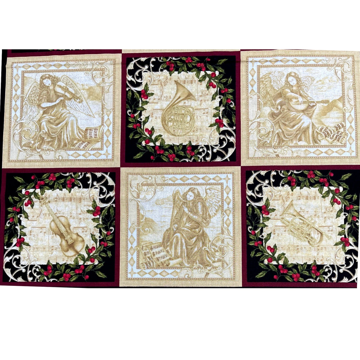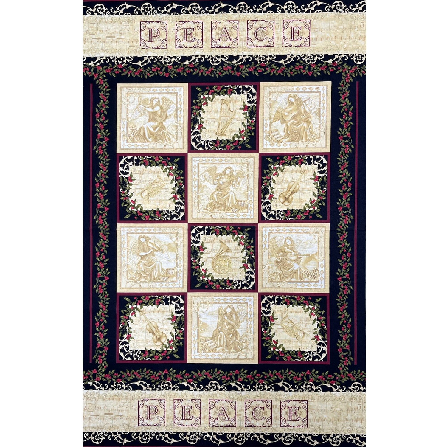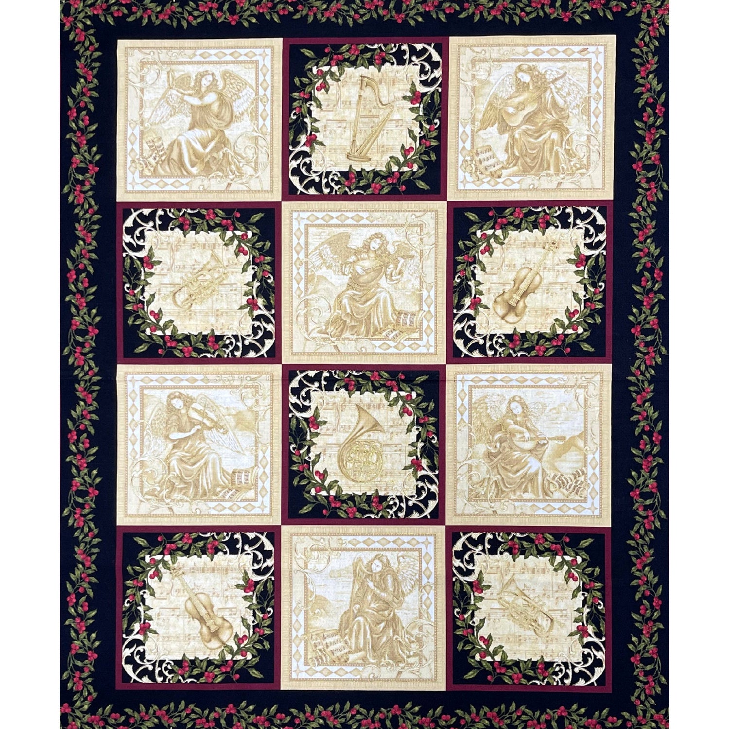 Celebrate the season with the Choir of Angels fabric panel from Benartex. This 100% cotton quilting panel features elegant angels in red, black, and gold, highlighted with shimmering metallic accents. Perfect for wall hangings, quilts, table runners, and festive décor, this panel brings timeless beauty and a spiritual touch to your Christmas sewing projects.