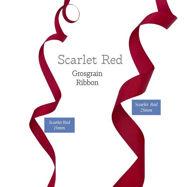 Scarlet Red Grosgrain Ribbon – 15mm or 25mm - Scarlet Red 15mm-1mtr is backordered and will ship as soon as it is back in stock.