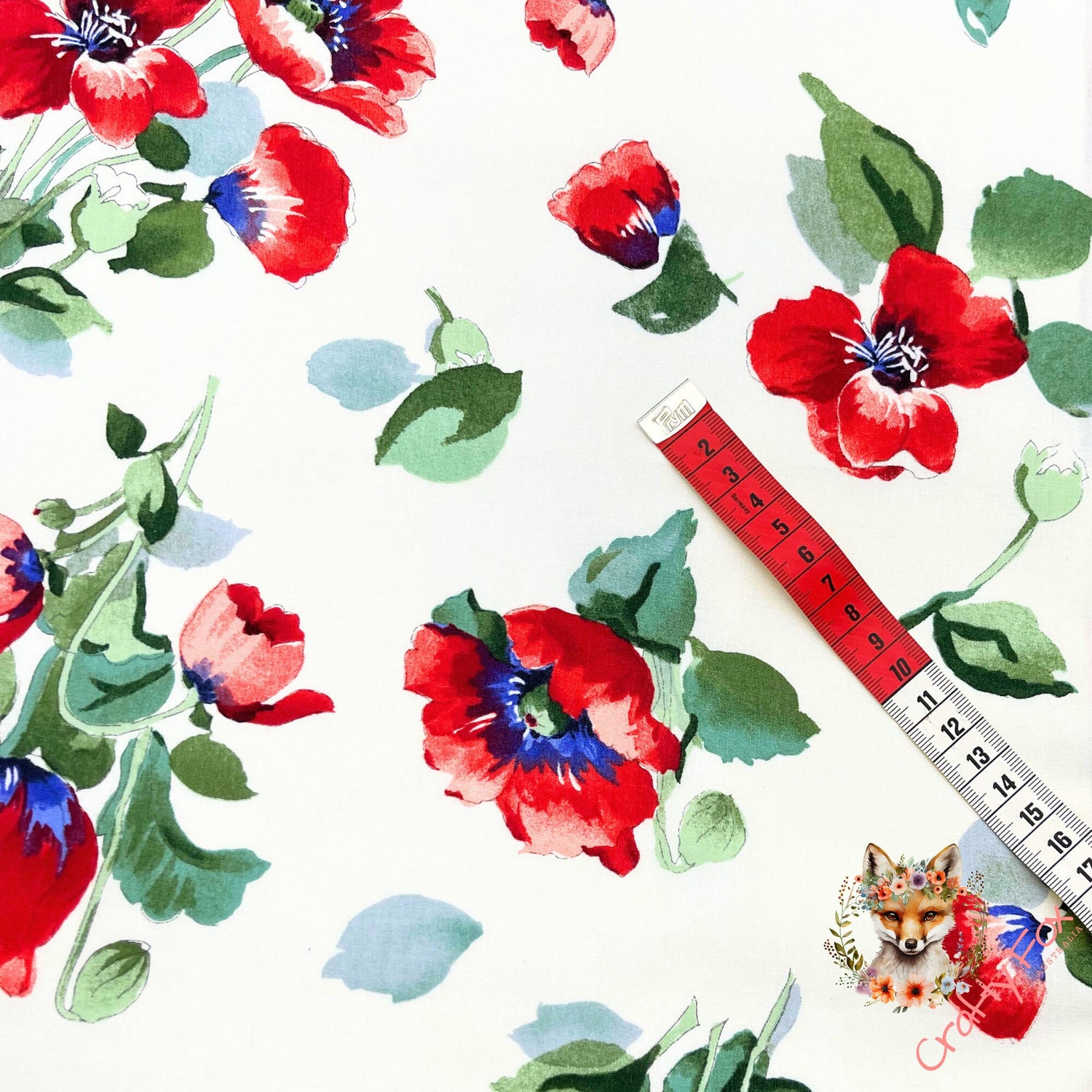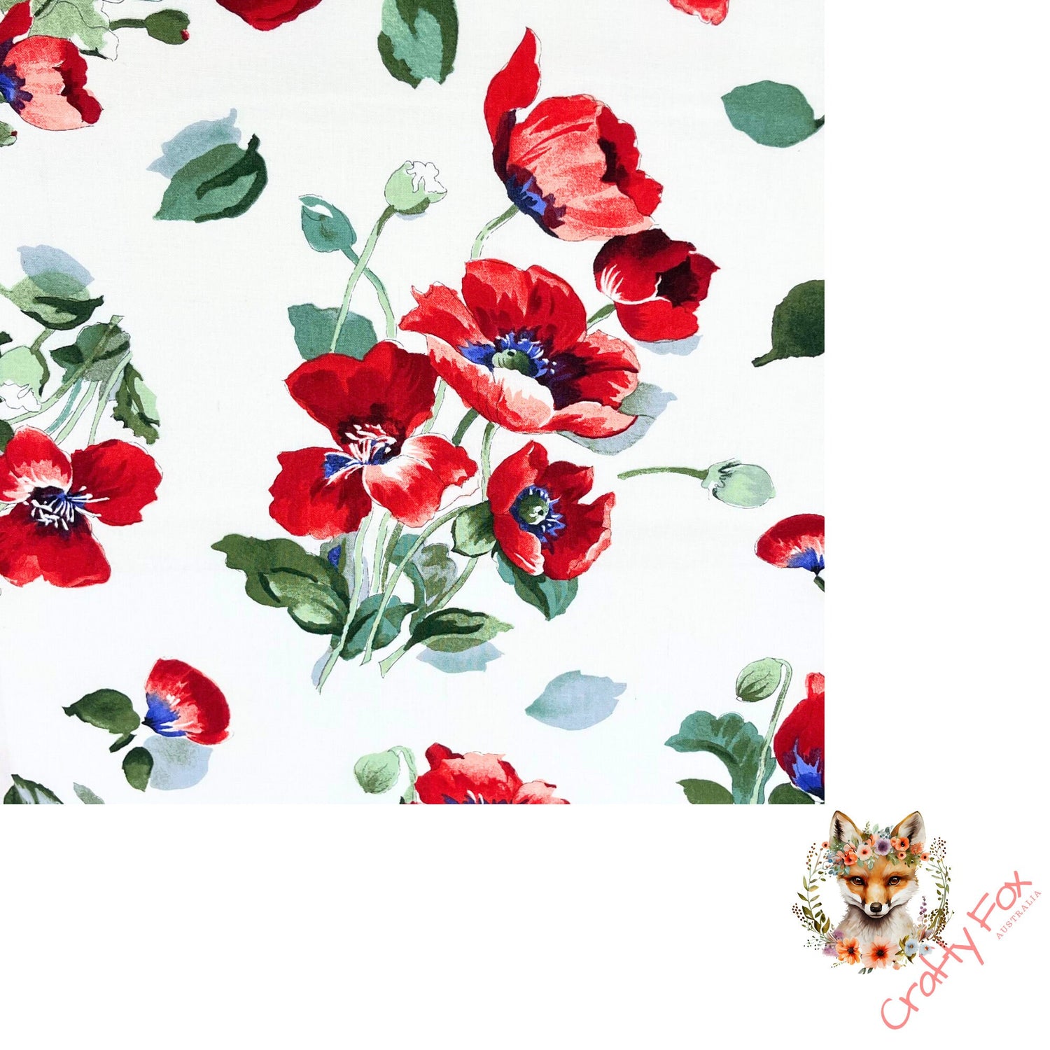 Bring your projects to life with the vibrant Fresh Cut Poppies fabric, designed by Michelle D’Amore for Timeless Treasures. This premium cotton quilting fabric features a fresh and bold poppy floral print on a crisp white background, perfect for quilts, home décor, and creative sewing projects. Soft, smooth, and easy to work with – it's a beautiful addition to any fabric stash.