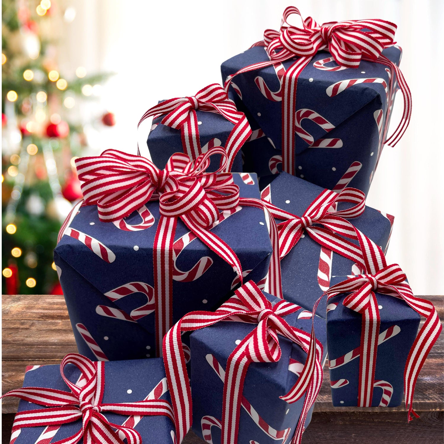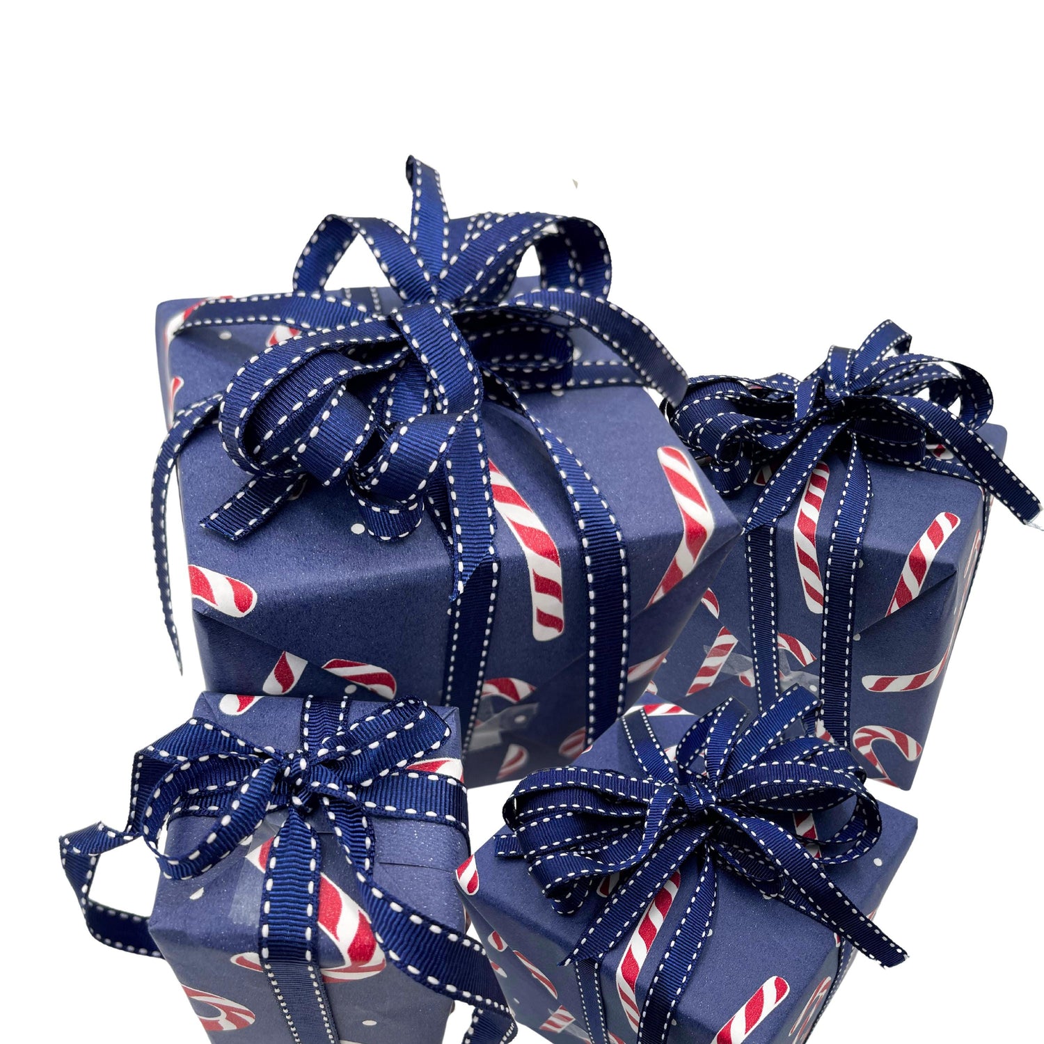 Bring festive cheer with our Candy Cane Navy Wrapping Paper! Featuring a classic candy cane design on a deep navy background, this premium 80gsm uncoated paper is perfect for Christmas and holiday gifting.