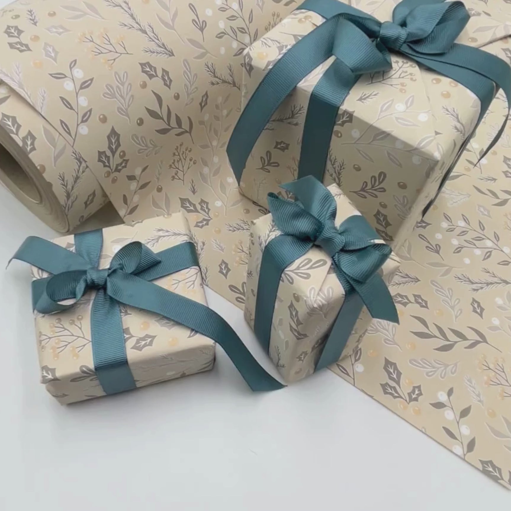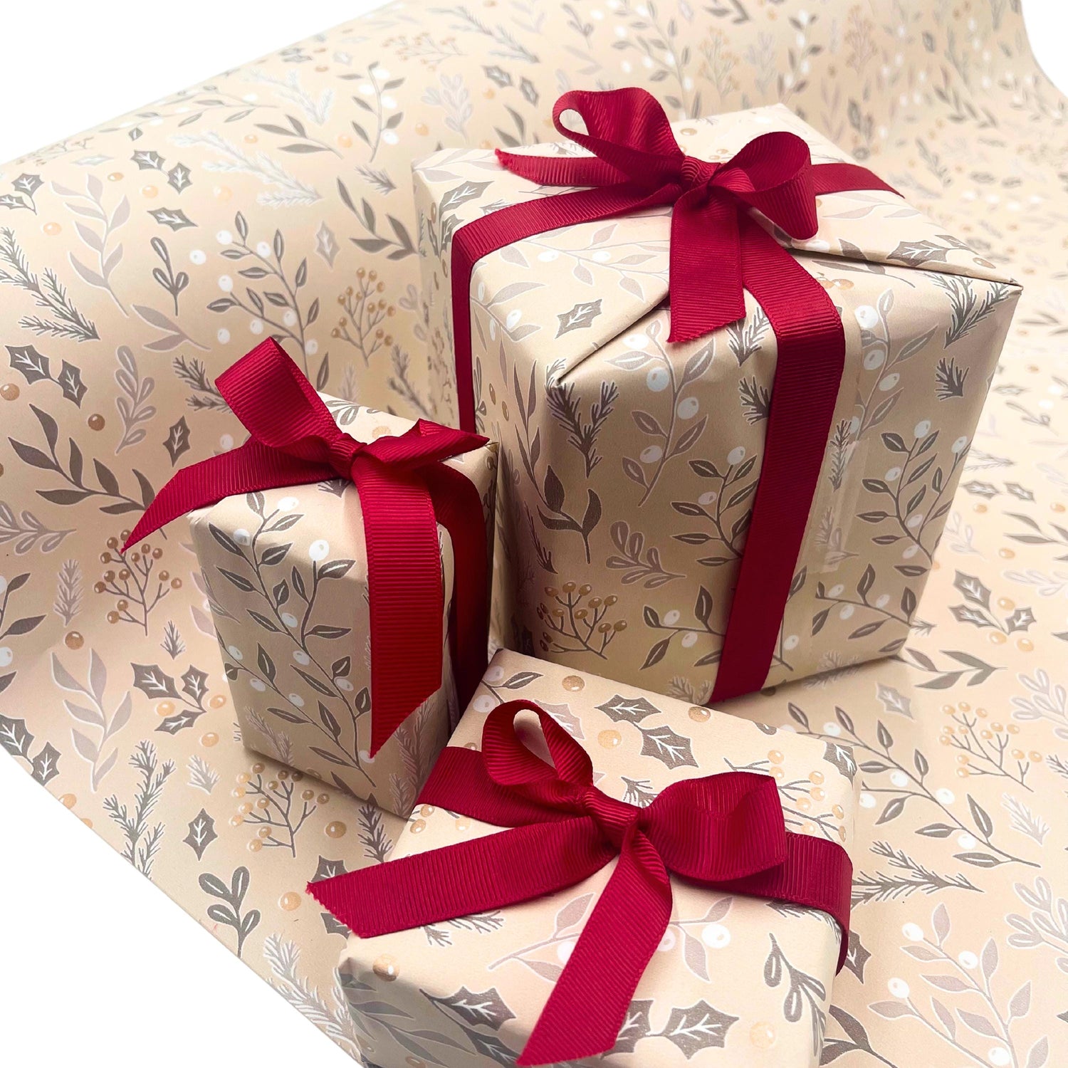 - 3 metres of Gift Paper + 3 metres of (15mm wide) Grosgrain Pine Ribbon