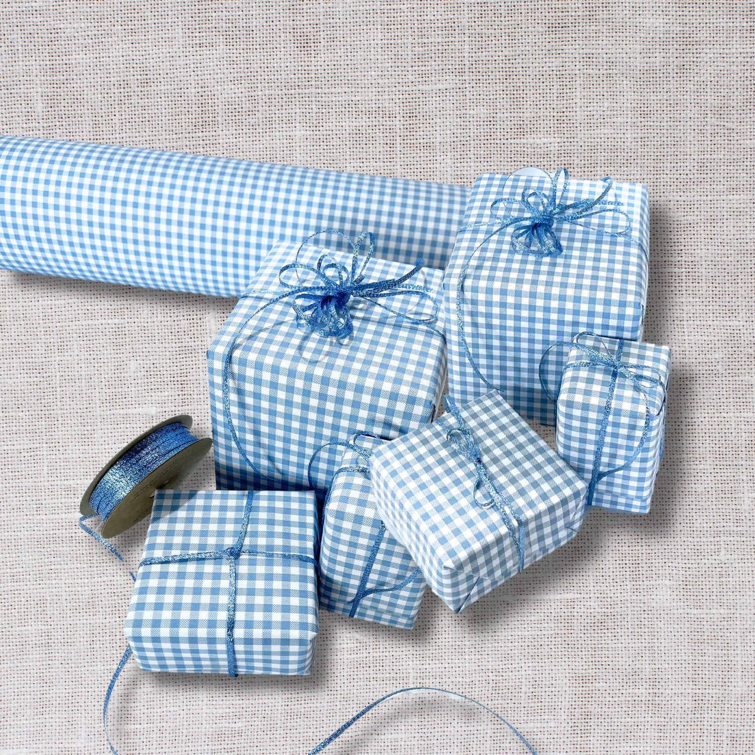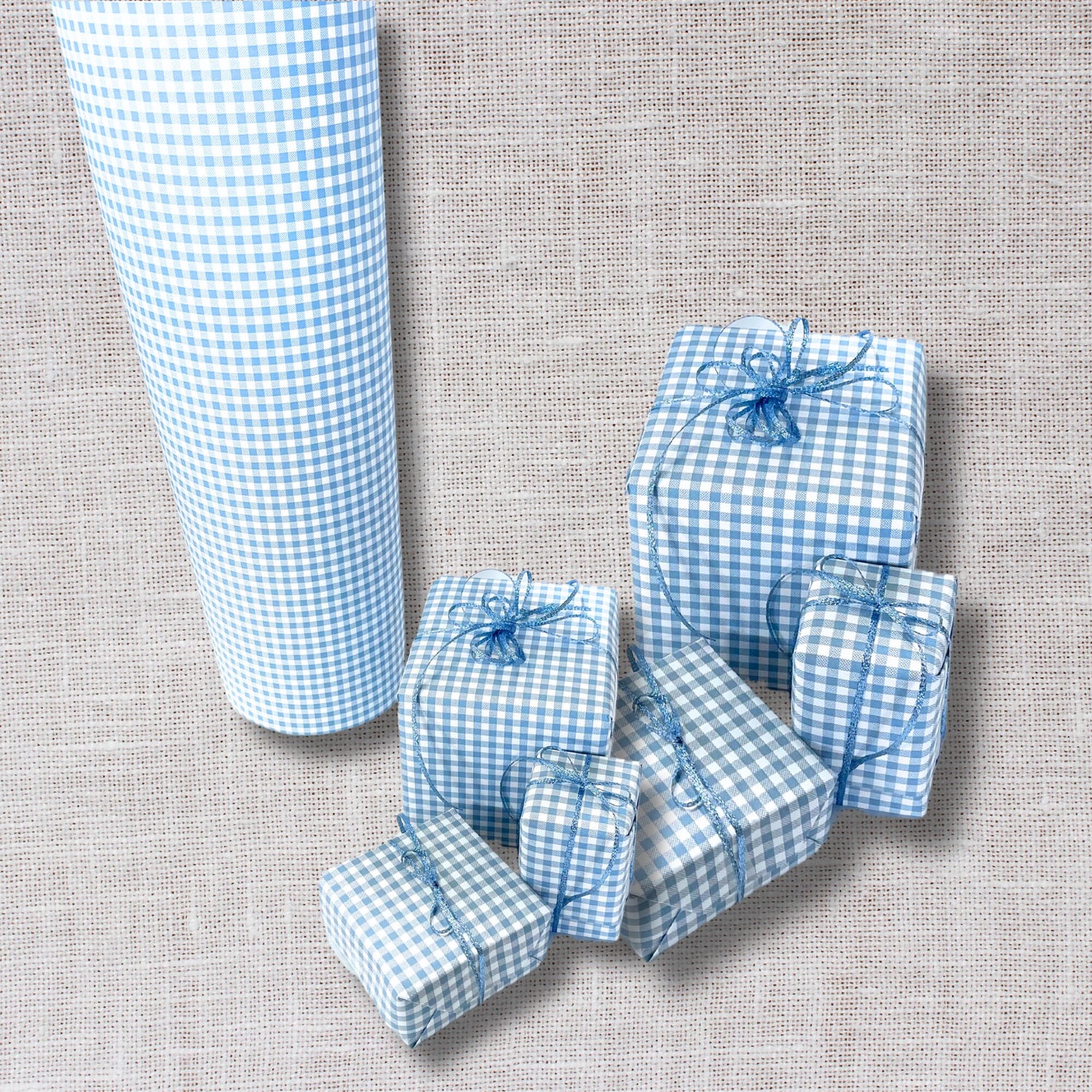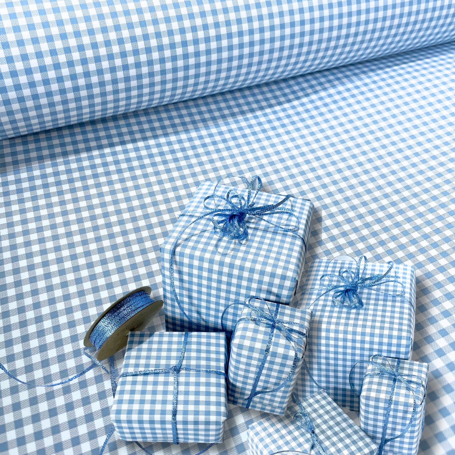 Gingham French Blue Gift Wrapping Paper – Eco-Friendly 80gsm | 60cm Wide