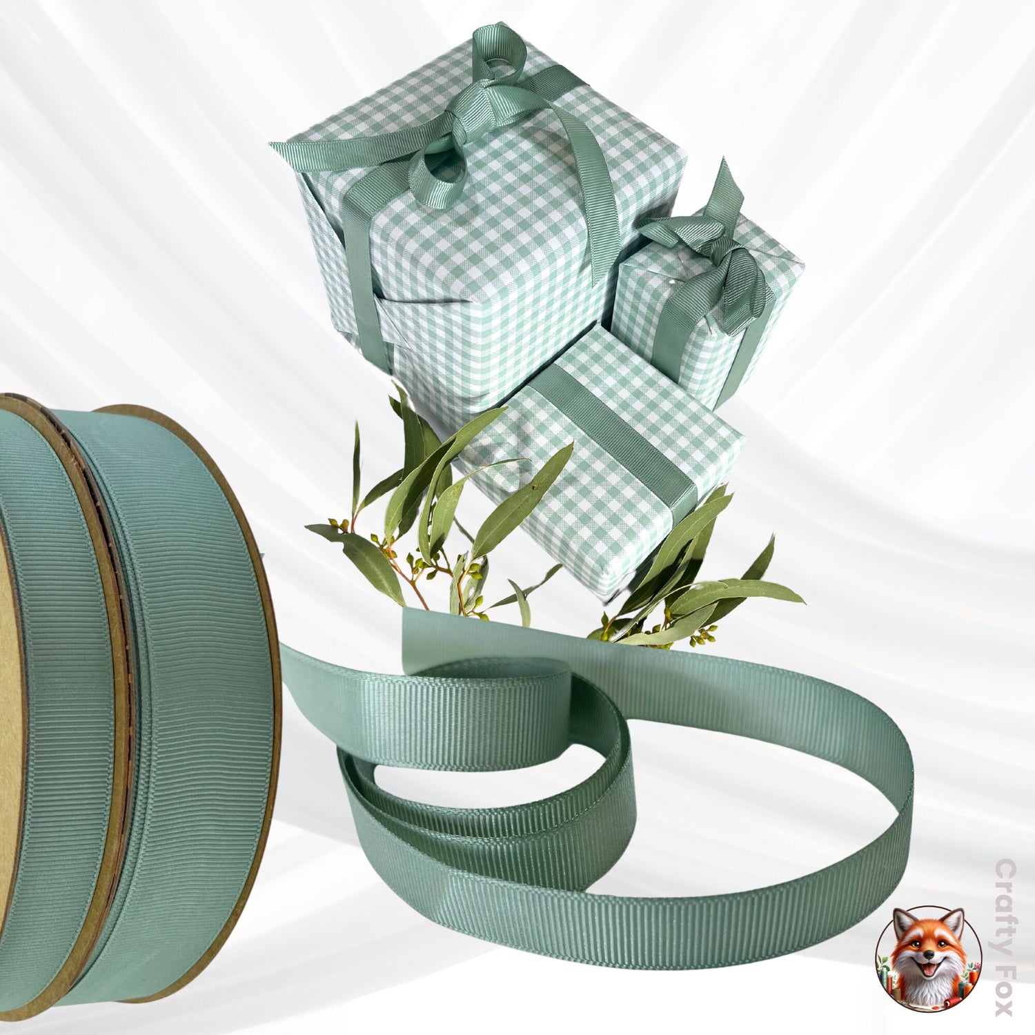 - Ribbon Width: 15mm Grosgrain Eucalyptus (optional bundle)