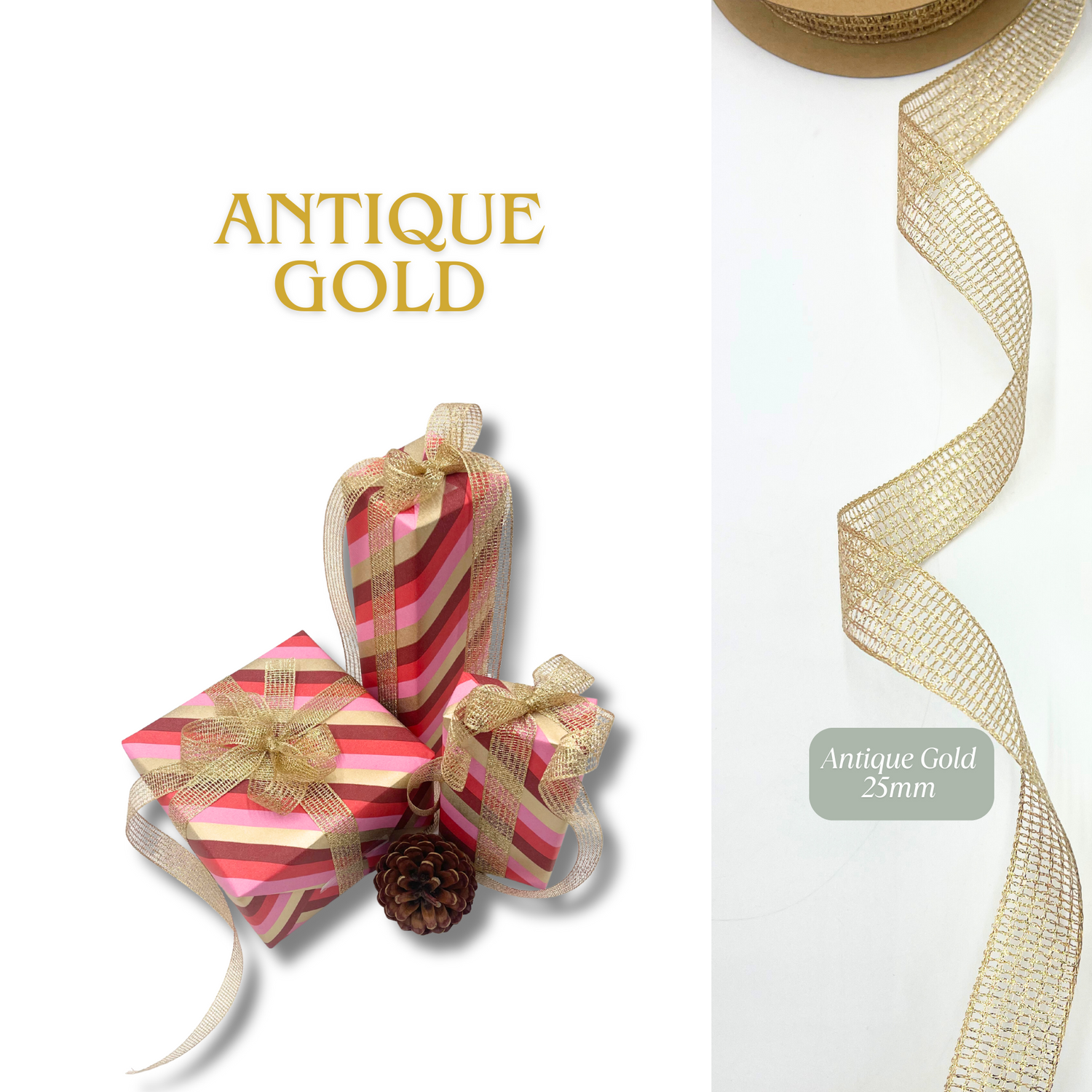 • 3 metres Gift Paper + 5 metres Antique Gold Ribbon (25mm wide)
