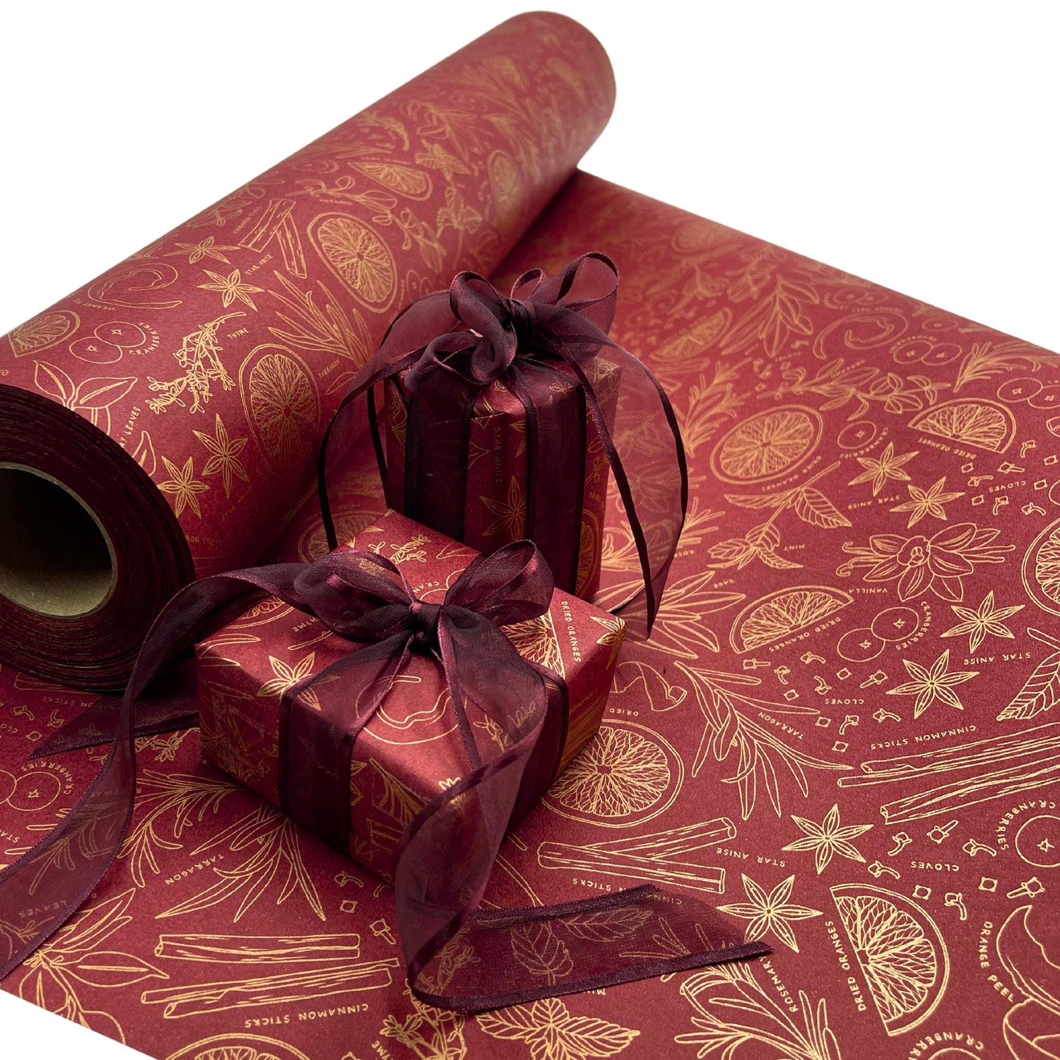 Sugar and Spice Red Gift Wrapping Paper – Eco-Friendly 80gsm | 60cm Wide - Paper 1 Metre (100cm) is backordered and will ship as soon as it is back in stock.
