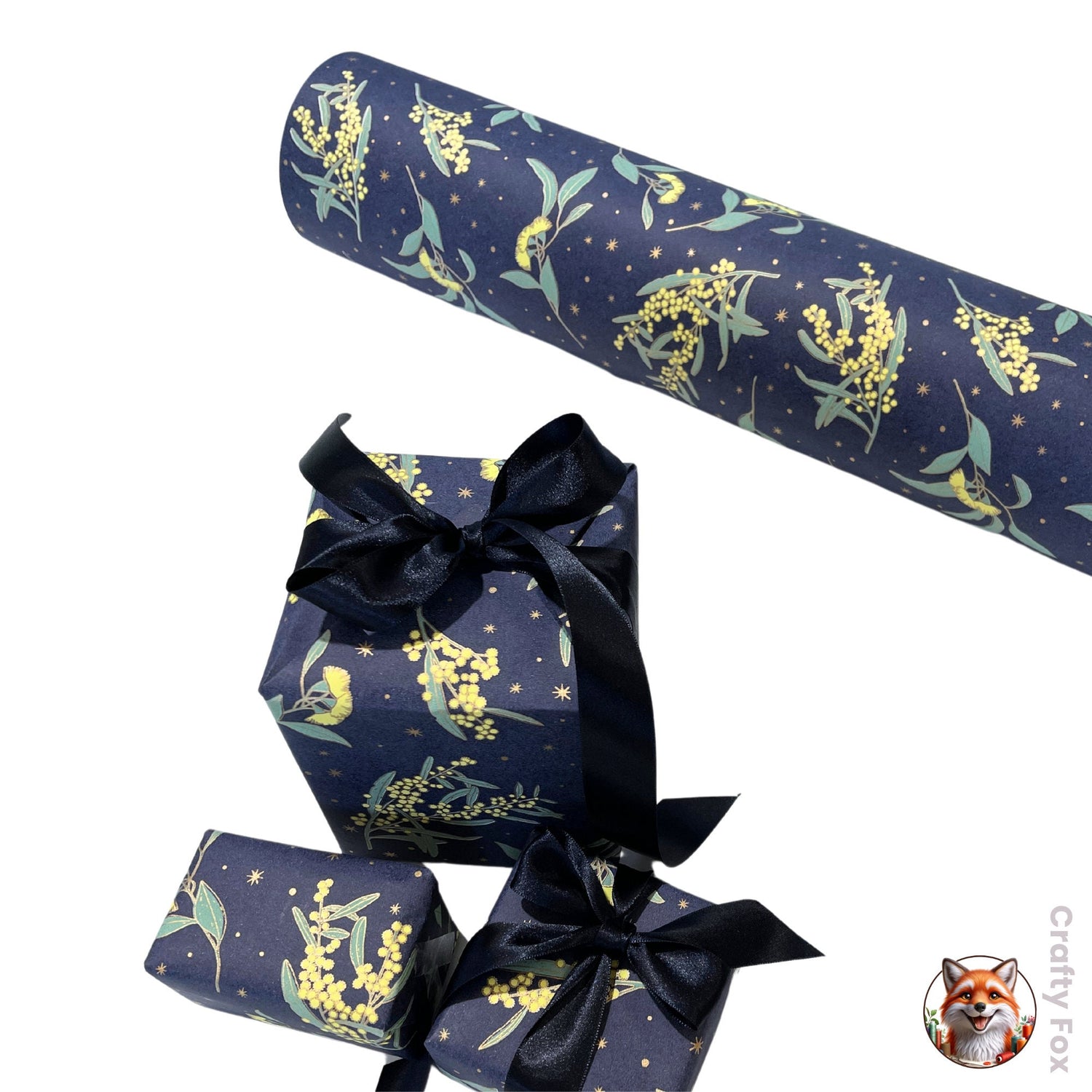 Wrap your gifts in natural elegance with Wattle Floral Gift Wrapping Paper. Crafted from eco-friendly 80gsm uncoated paper, this high-quality wrap is perfect for birthdays, weddings, and special occasions. Rolled for a crease-free finish and paired with an optional satin navy ribbon for extra charm.