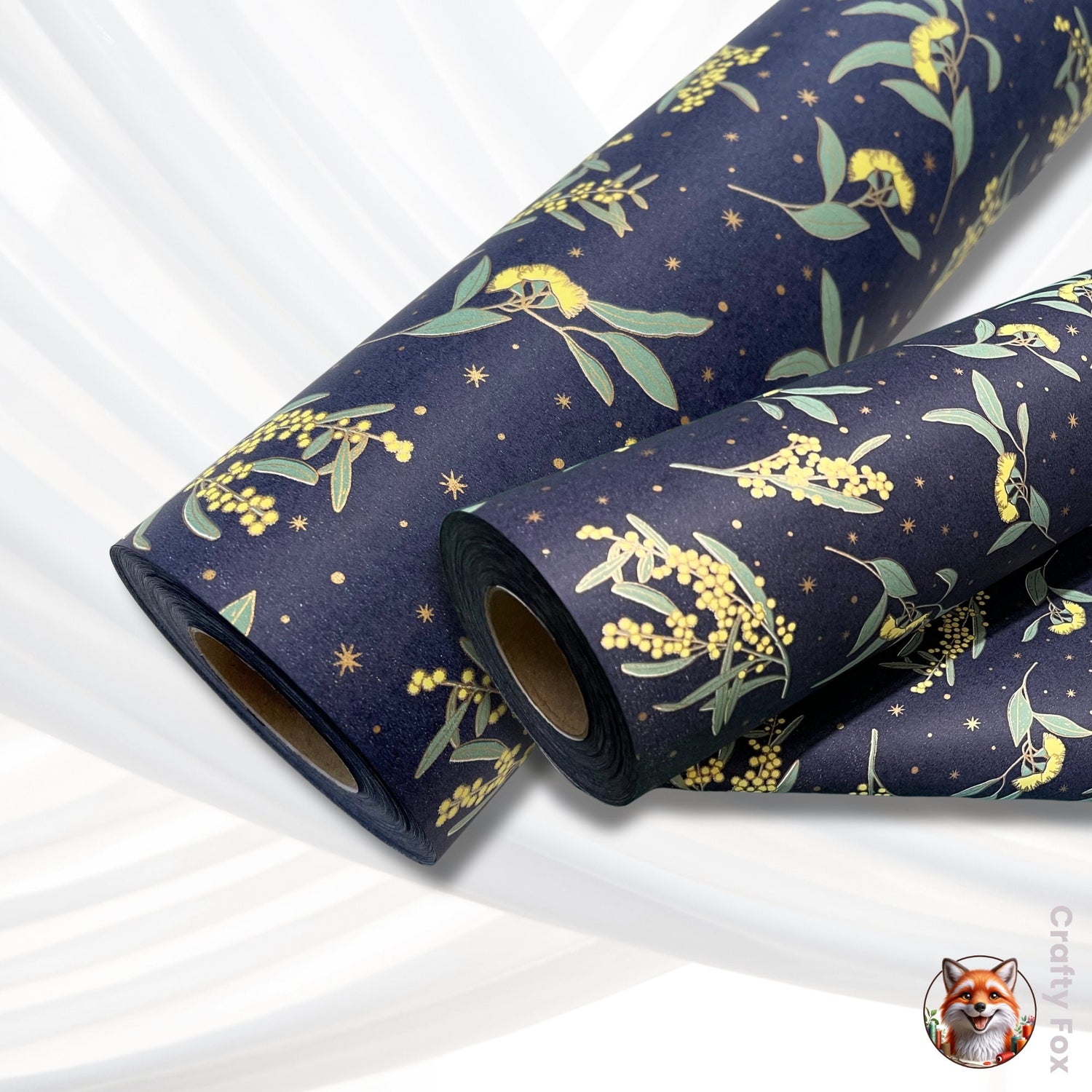 Wattle Floral Gift Wrapping Paper – 80gsm Eco-Friendly, 60cm Wide - Paper 1 Metre (100cm) is backordered and will ship as soon as it is back in stock.