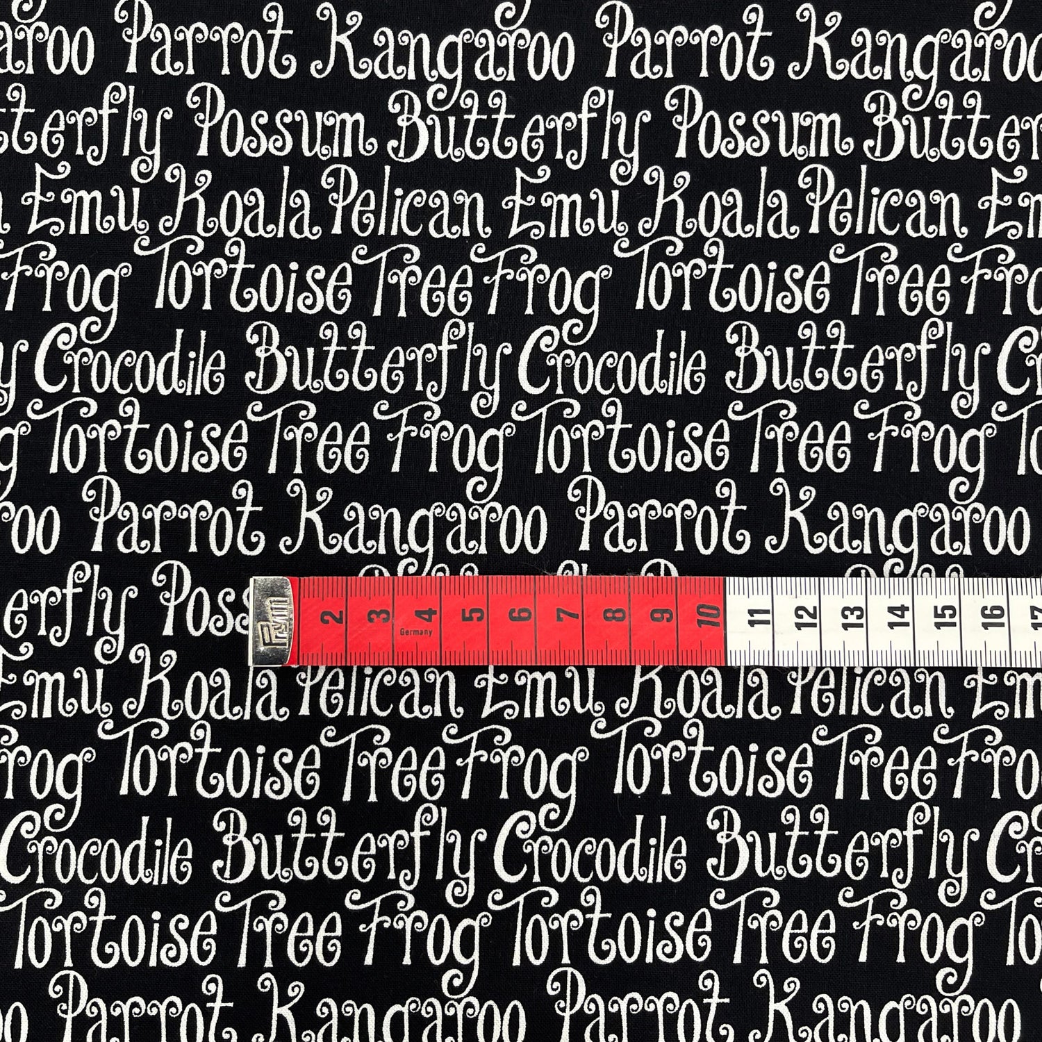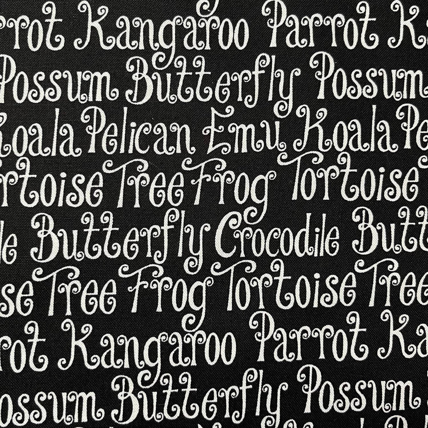 Animal Words Black Fabric – Aussie Mates, Henry Glass, HG6469.99Black
