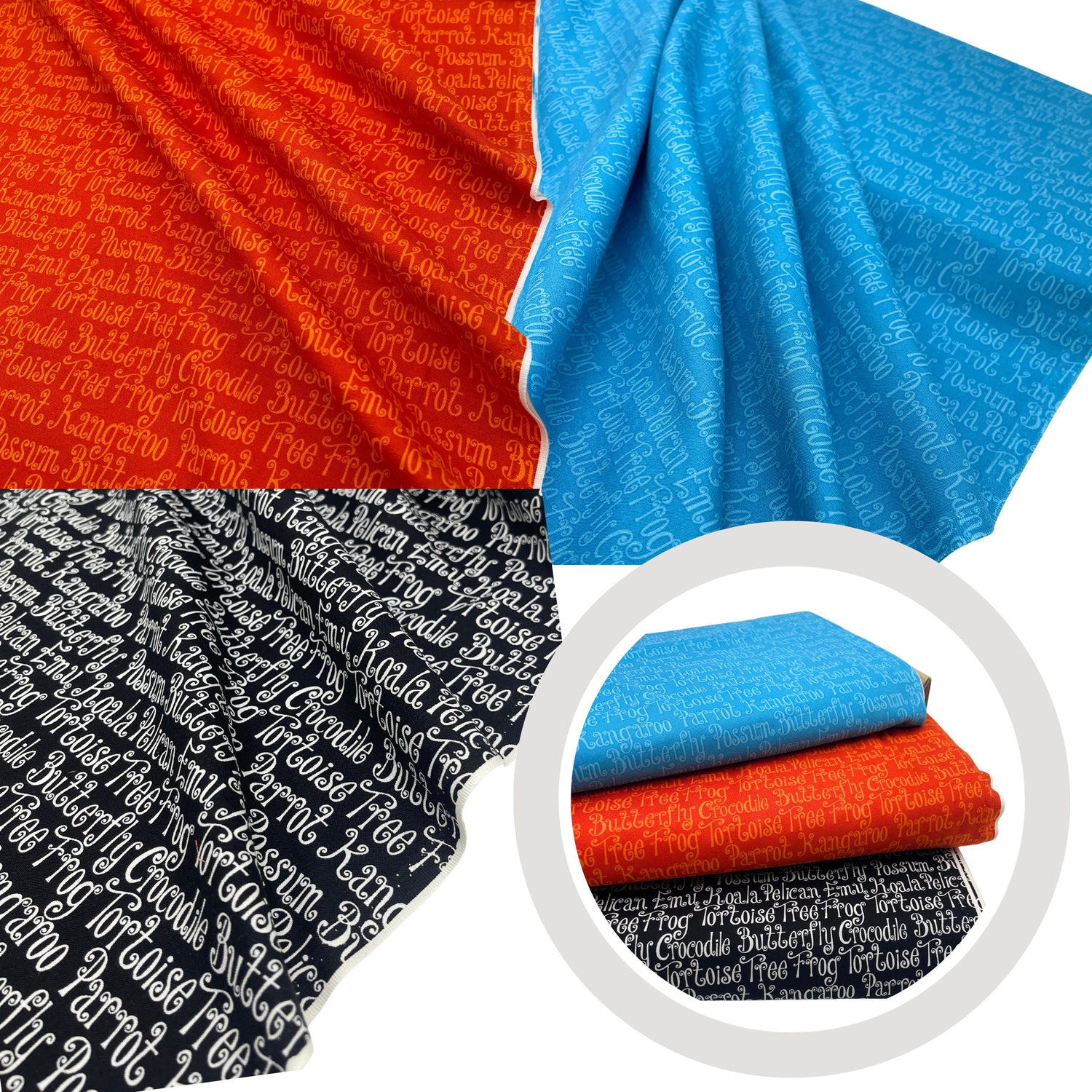 Add bold Aussie flair to your next project with Animal Words in Black from the Aussie Mates collection by Delphine Cubitt for Henry Glass. Featuring playful wildlife-themed words inspired by iconic Australian animals like the koala, kangaroo, crocodile, and possum, this 100% cotton fabric is perfect for quilting, clothing, or home décor with a Down Under twist.