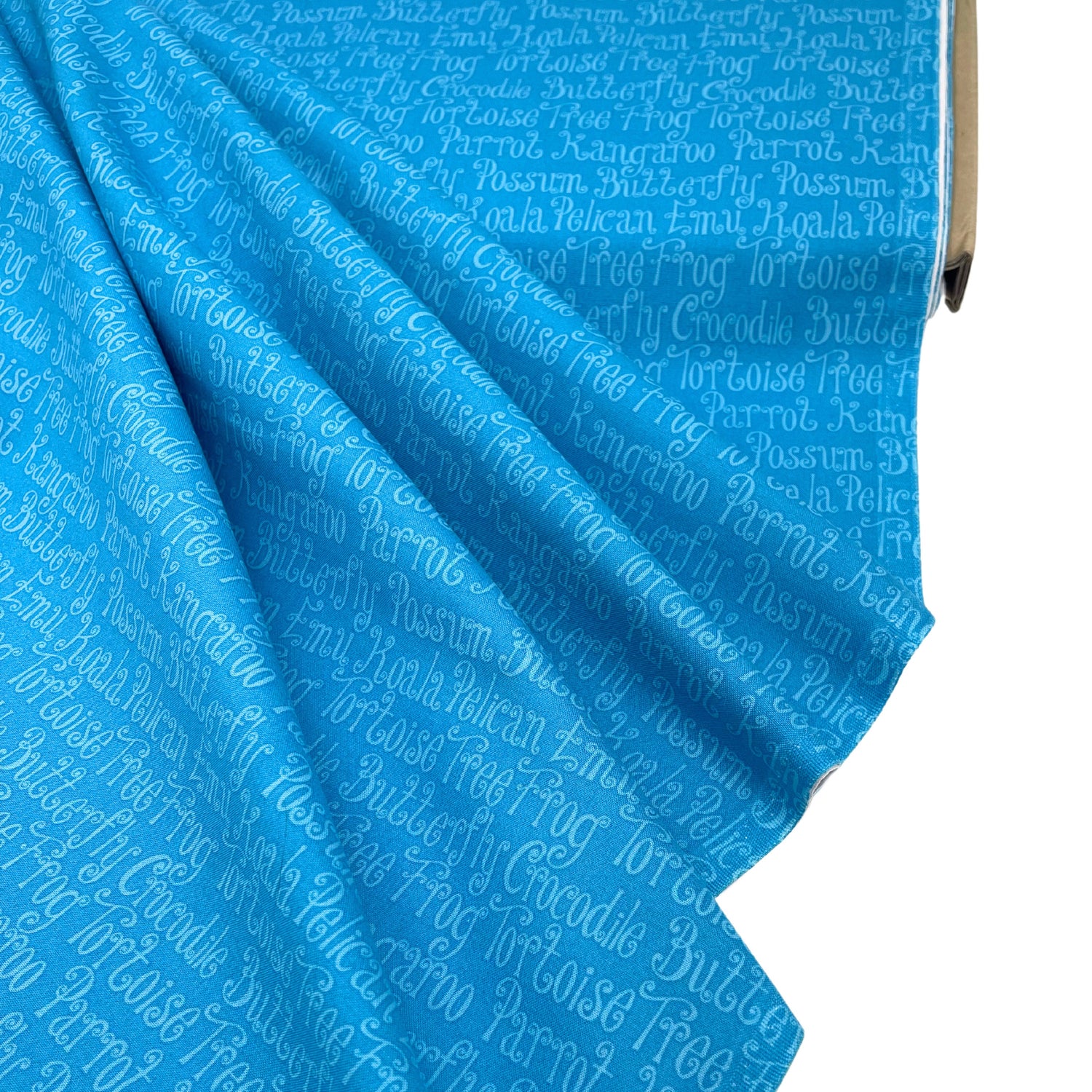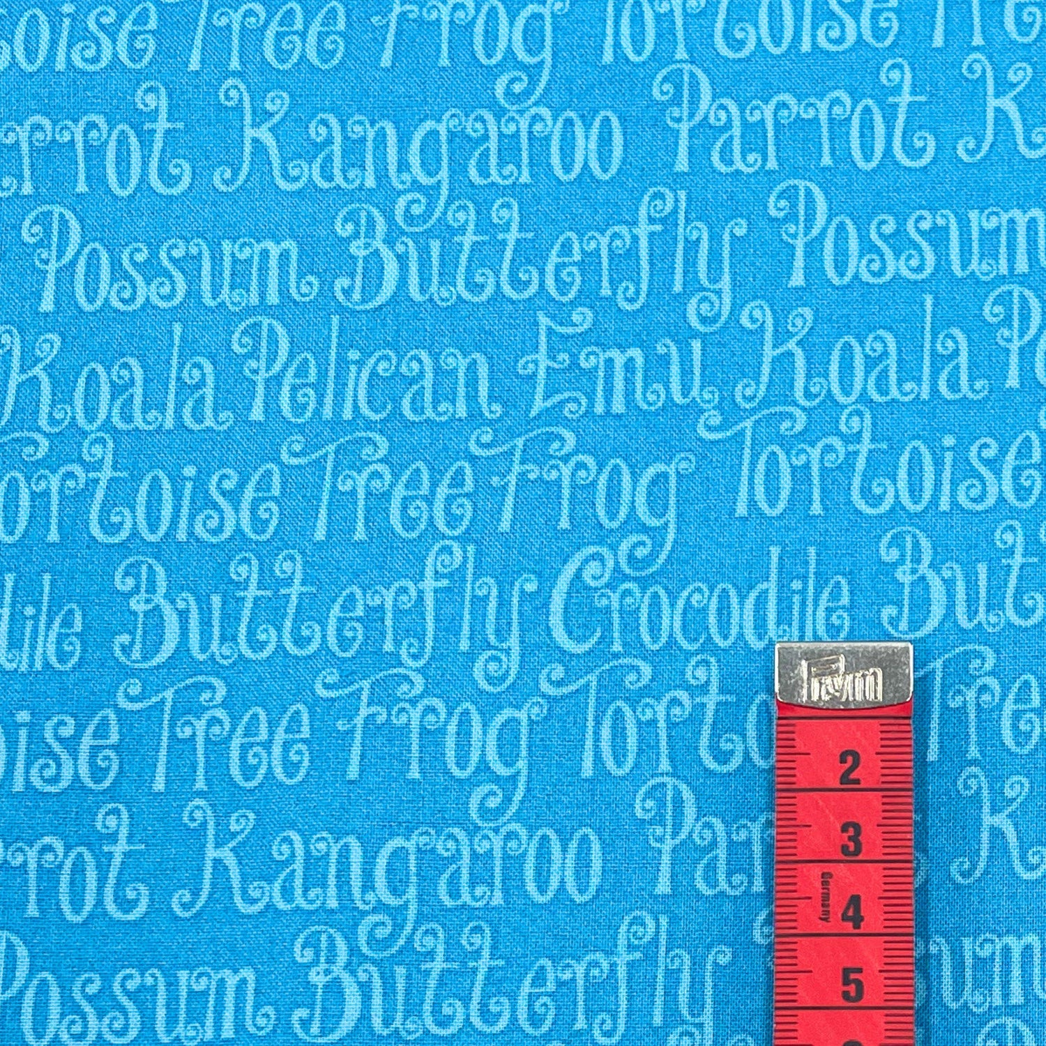 Animal Words Turquoise Fabric – Aussie Mates, Henry Glass, HG-AUSMATES