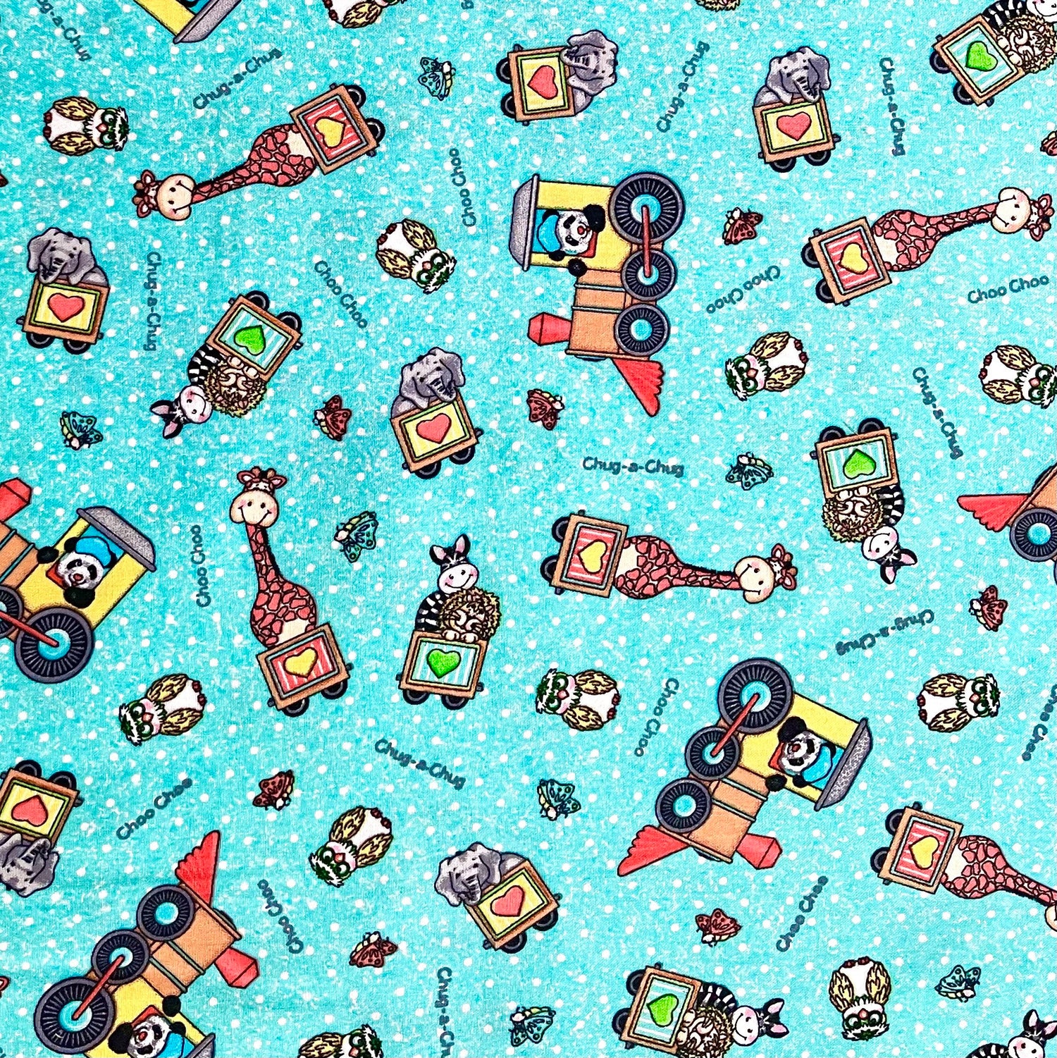 Bring playful charm to your sewing with Bazooples Choo Choo Toss by Springs Creative! Designed by Vicki Schreiner, this turquoise cotton fabric features whimsical Bazooples characters in a fun toss design. Perfect for children’s quilts, apparel, and décor.