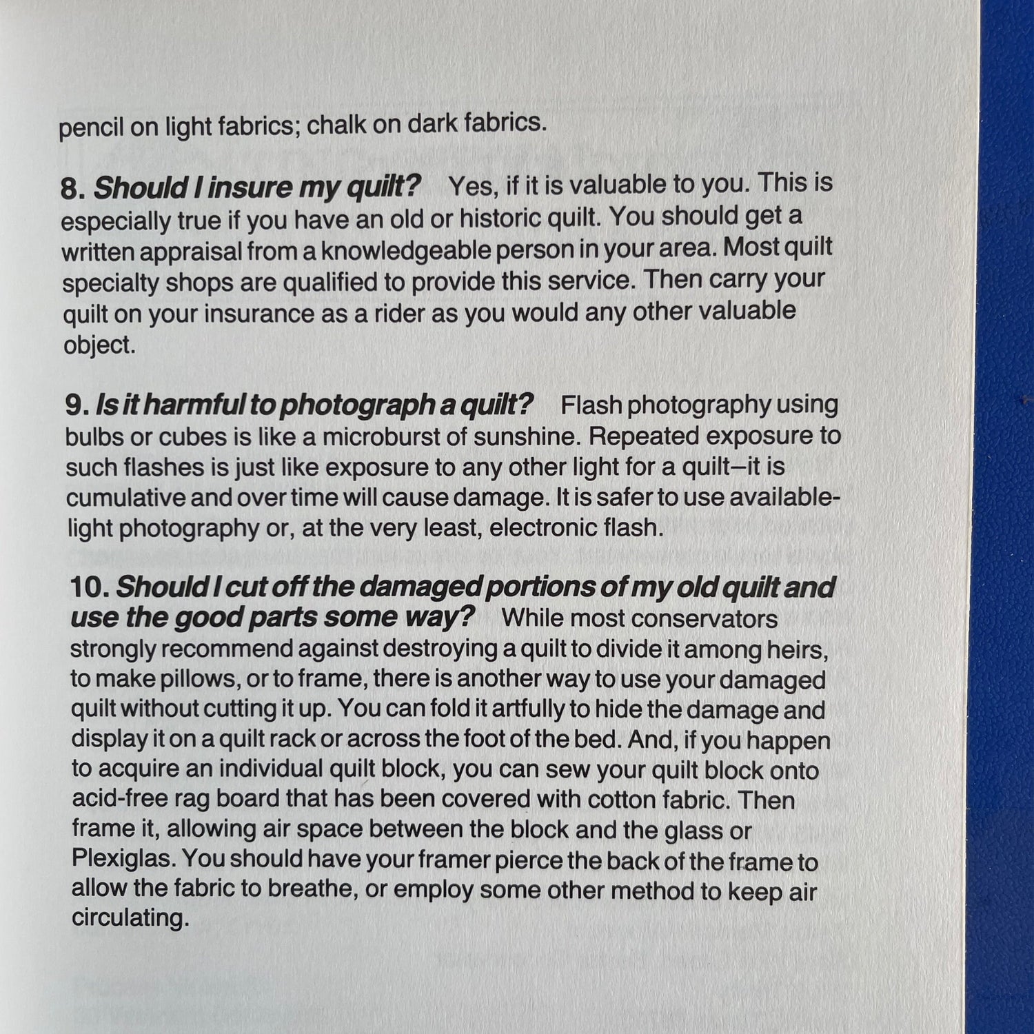 First Aid for Family Quilts Book – How to Preserve & Clean Your Quilts (1992)