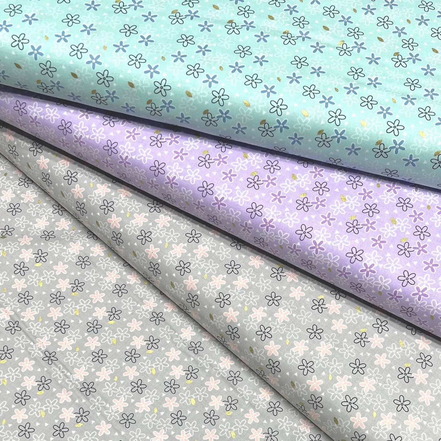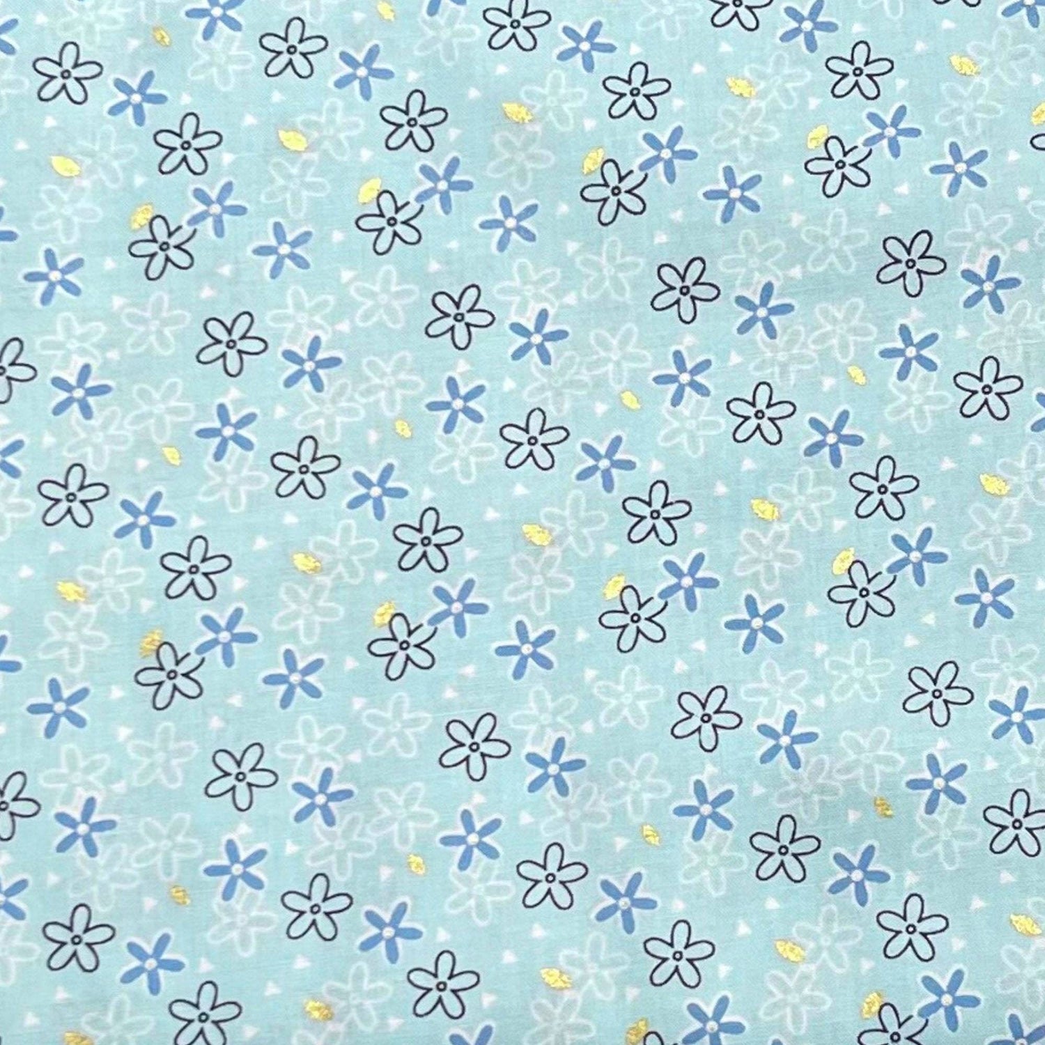 Glitter Daisy – Mist Blue Floral Cotton Fabric with Gold Metallic – Michael Miller - 1/2 Yard (18"x44") is backordered and will ship as soon as it is back in stock.